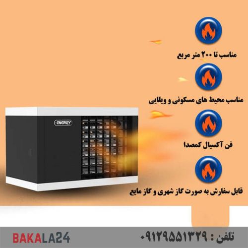 - بخاری انرژی دارای سنسور حدی دما برای جلوگیری از افزایش دمای مبدل حرارتی از حد مجاز میباشد.